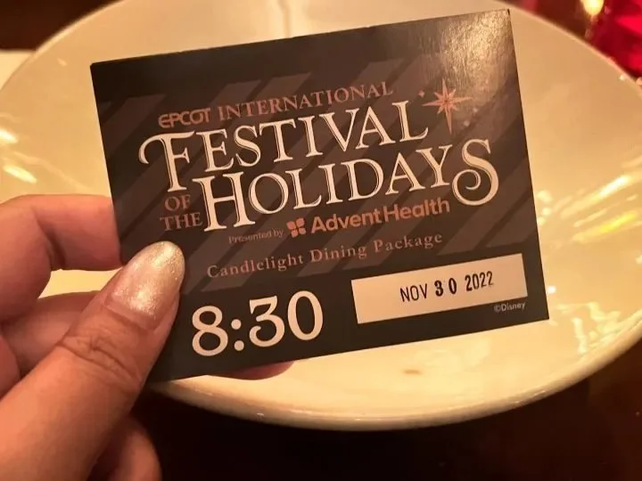 Dining Package guests will receive Candlelight Seating badges at the restaurant after their meal. The badge will specify the date and showtime for reserved seating that night. While seating is guaranteed, dining package guests enter America Gardens Theatre in a separate queue and will be seated on a first-come, first served basis. Guests who have not reserved a Candlelight Processional Dining Package will also be seated on a first-come, first-served basis, but seating is based on availability due to limited capacity. Valid theme park admission is required to enter EPCOT and admission is not included in the price of the dining package.
