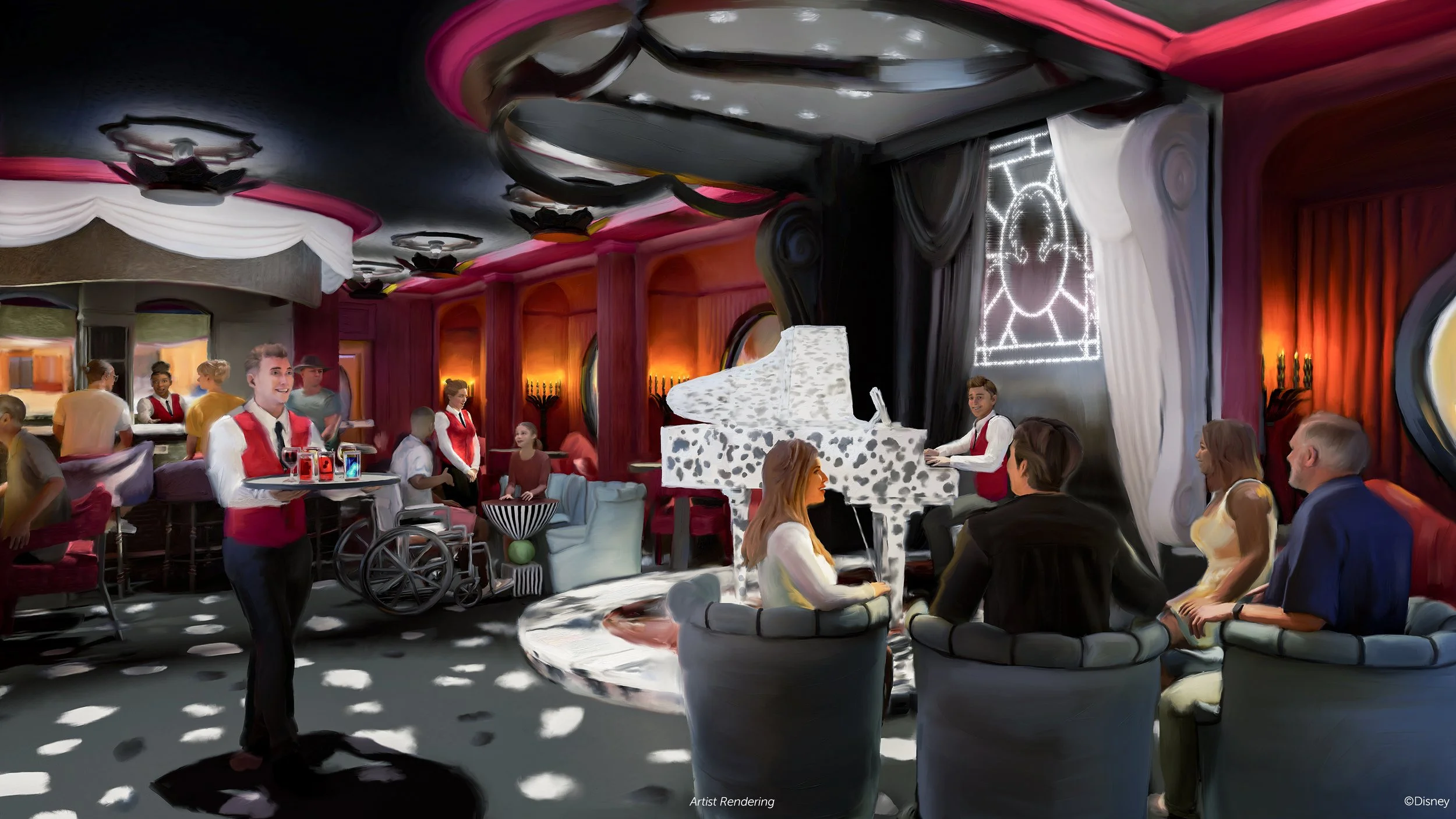 Lounges across the ship include De Vil’s piano lounge, Cask and Cannon with its pirate-inspired rum menu, The Sanctum inspired by Doctor Strange, Haunted Mansion Parlor, The Rose, and more.